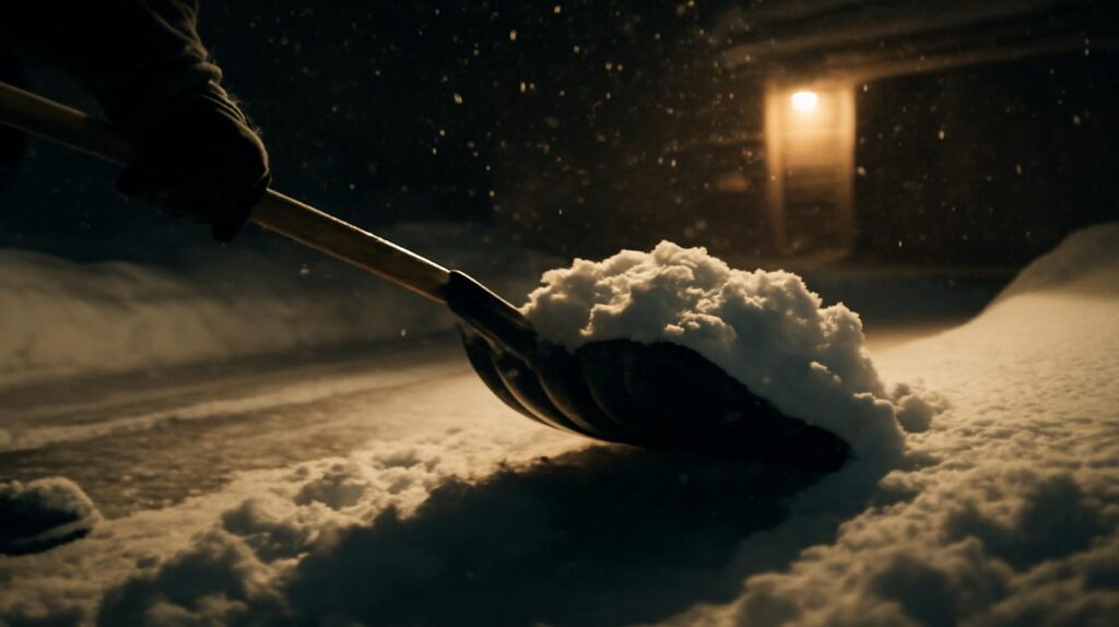 The snow is heavy, dense—the kind that packs firmly under the shovel, resisting each lift. It is the famous snowball snow, the one children dream of, perfect for rolling into spheres and stacking into snowmen with lopsided grins and twig arms. But it is also the kind that makes shoulders ache and breath come harder for anyone tasked with clearing it.