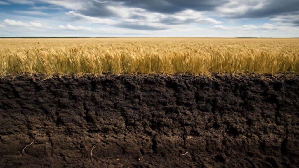 The result was chernozem: a soil rich in humus, the dark organic material that gives it its almost black color. Up to 15% organic matter in some places, compared to just a few percent in typical agricultural soils. It became a reservoir of nutrients and moisture, a bank of fertility that plants could draw from even in harsh conditions. Beneath your boots, where you might see “just dirt,” lies one of the silent engines of human civilization.