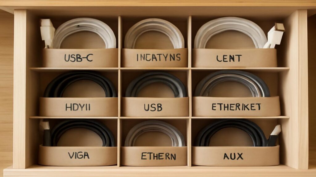 Good storage isn’t only about how you coil; it’s about where those coils go afterward. The method that keeps cables accessible is less about fancy containers and more about clear categories, consistent habits, and visual simplicity. Your goal is simple: when you need a cable, you should know exactly where to look, and you should be able to grab it without disturbing anything else.