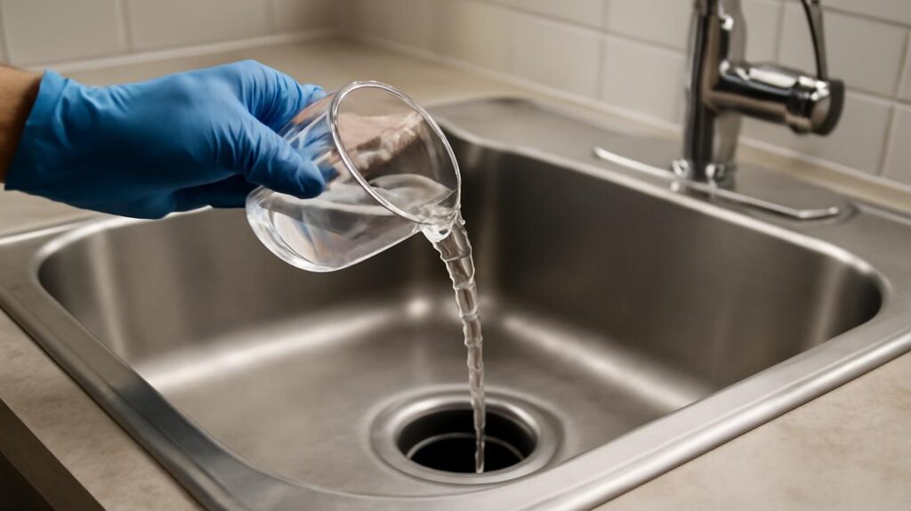 Then simply pour that half cup directly down the drain. No mixing. No diluting. Just straight in.